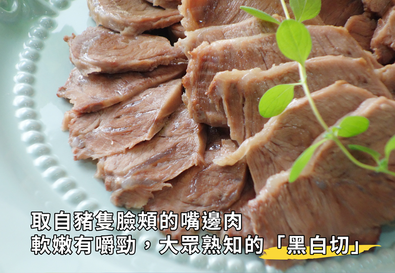 建議料理方式:將嘴邊肉至於熱滷水中(水+鹽巴+薑片),滾熟約6分鐘,悶11分鐘後撈起,切片淋上少許醬油膏風味更佳