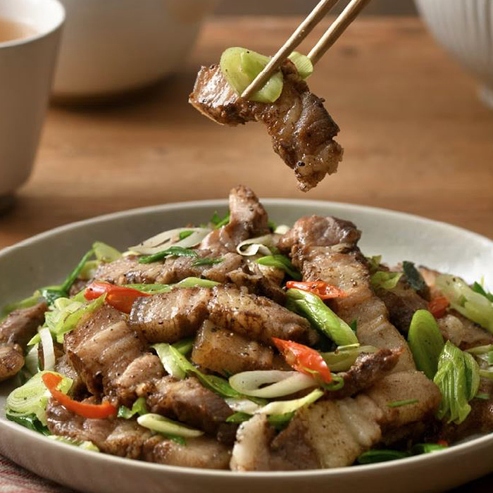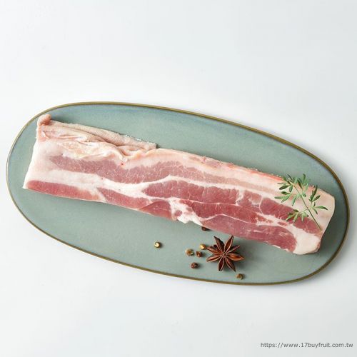 我們使用常見油脂分層均勻的亞麻籽五花肉條醃製,在家使用煎、烤等方式,表面為金黃色即可上桌,鹹味適中相當好入飯。